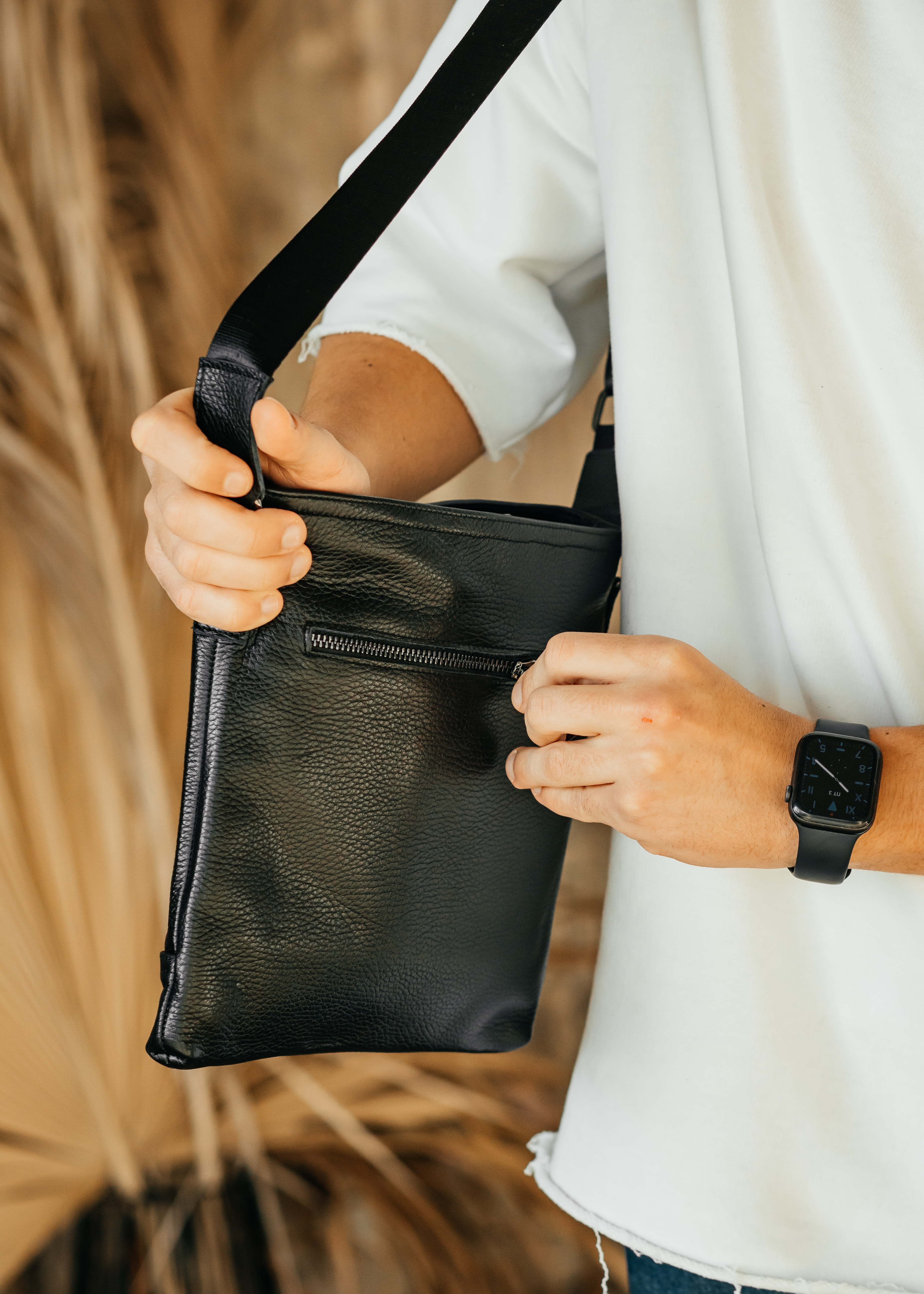 Груба фактура, акуратні шви, міцна металева фурнітура — кожна деталь зроблена з розумінням, що річ має служити роками.