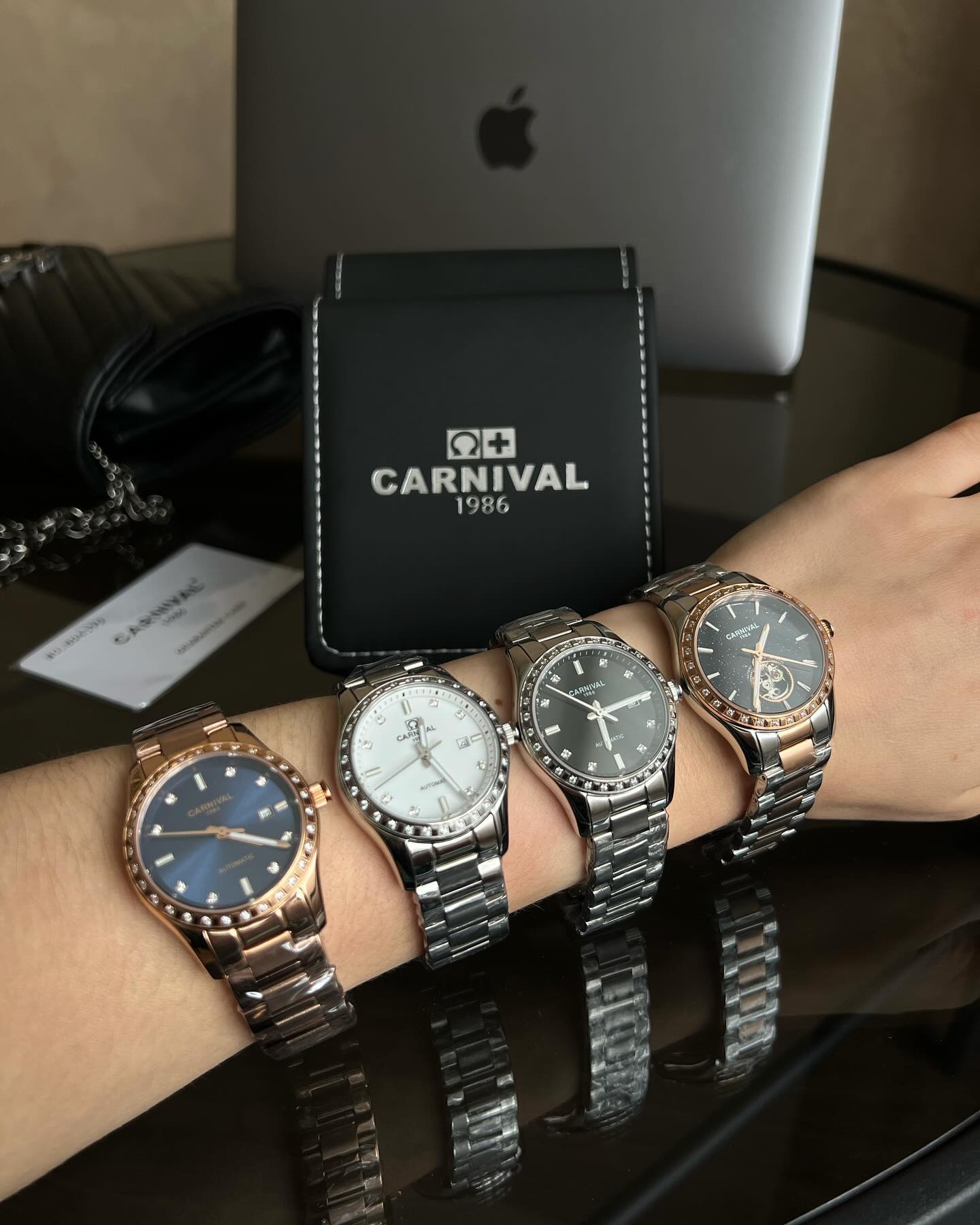 • Класичний білий циферблат: Витончений і мінімалістичний дизайн із блискучими кристалами додає моделі нотку розкоші.