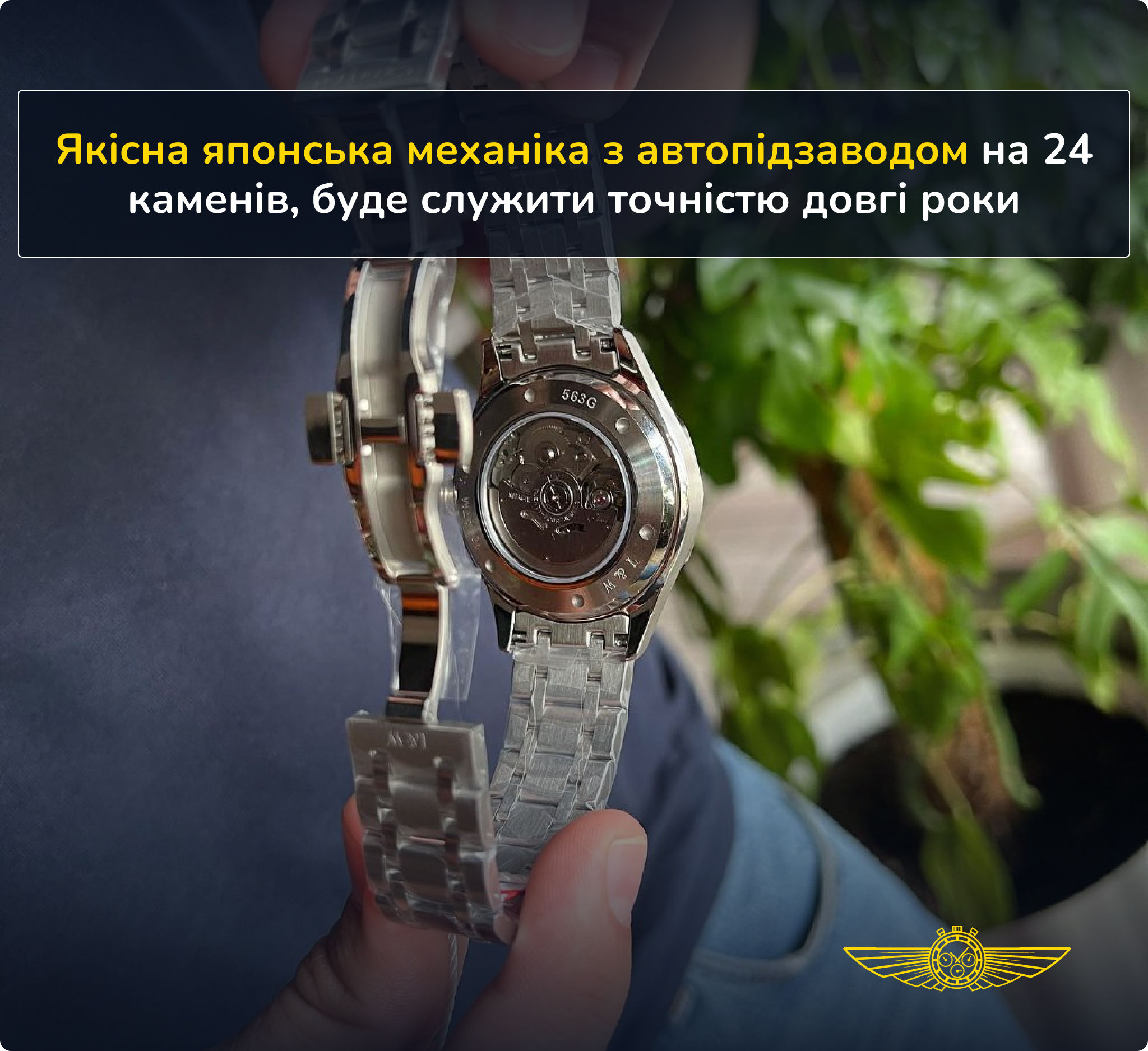 Якісна японська механіка з автопідзаводом на 24 камені, слугуватиме точністю довгі роки.
