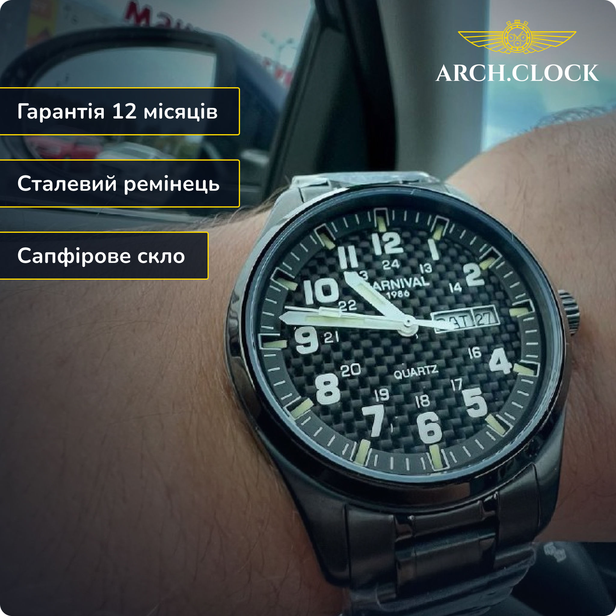 - Функції: Індикація дати, День тижня, Ілюмінісцентна підсвітка