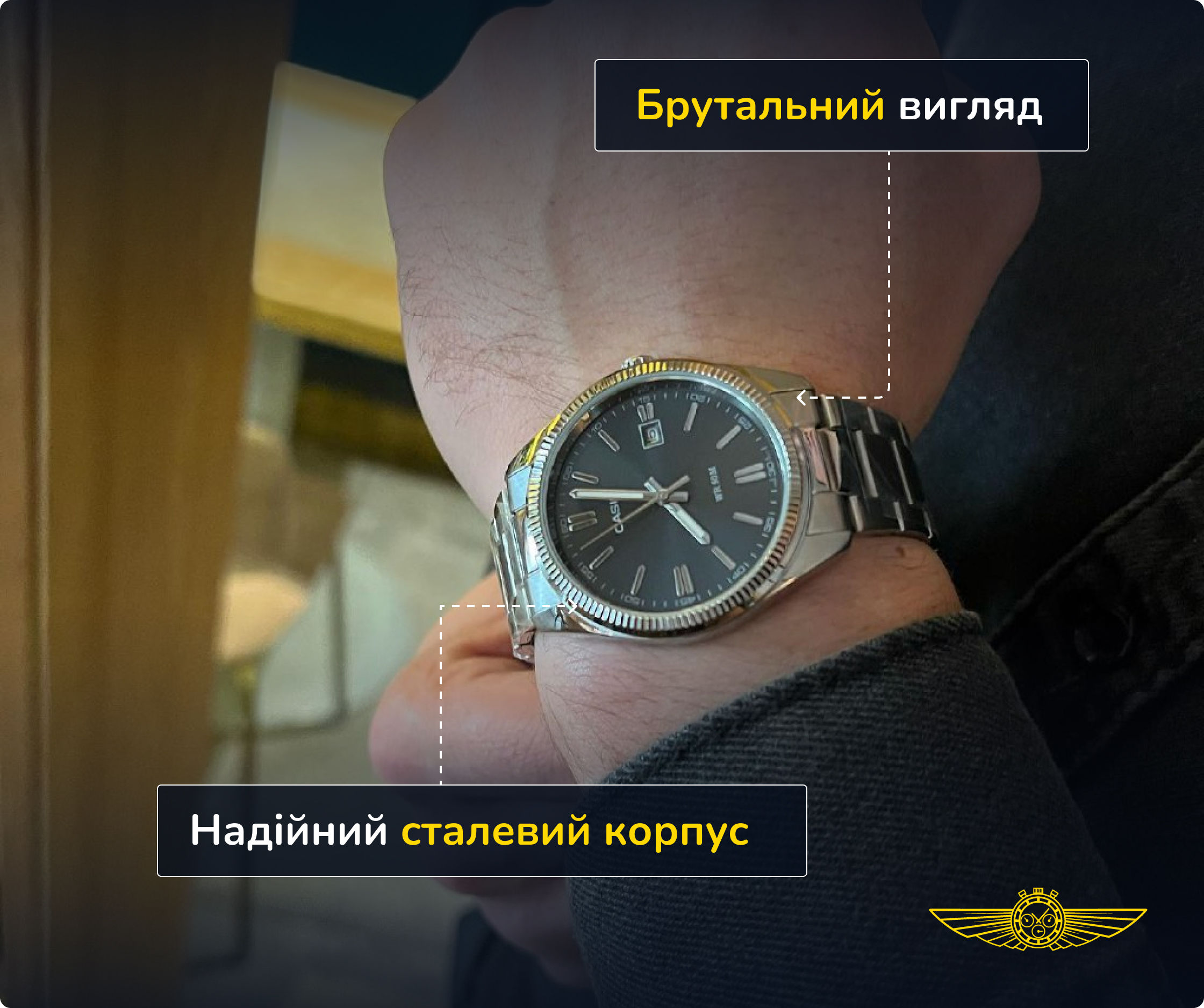 Водонепроникність до 50 метрів занурення та ударостійкий корпус із стійким до подряпин склом.