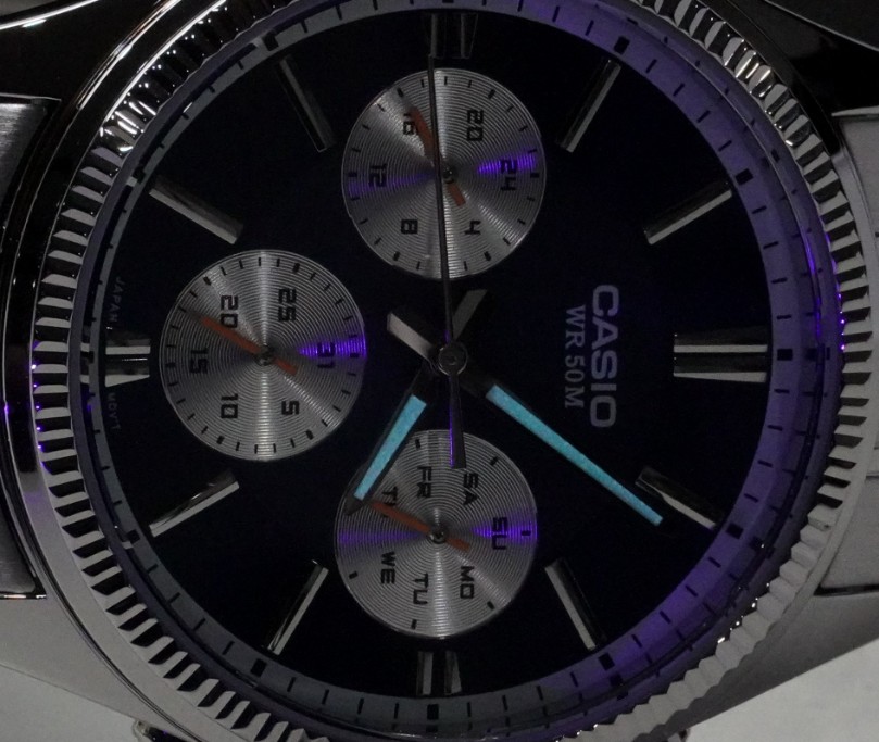 Три допоміжні циферблати (день, дата, 24 години) — підвищують функціональність.