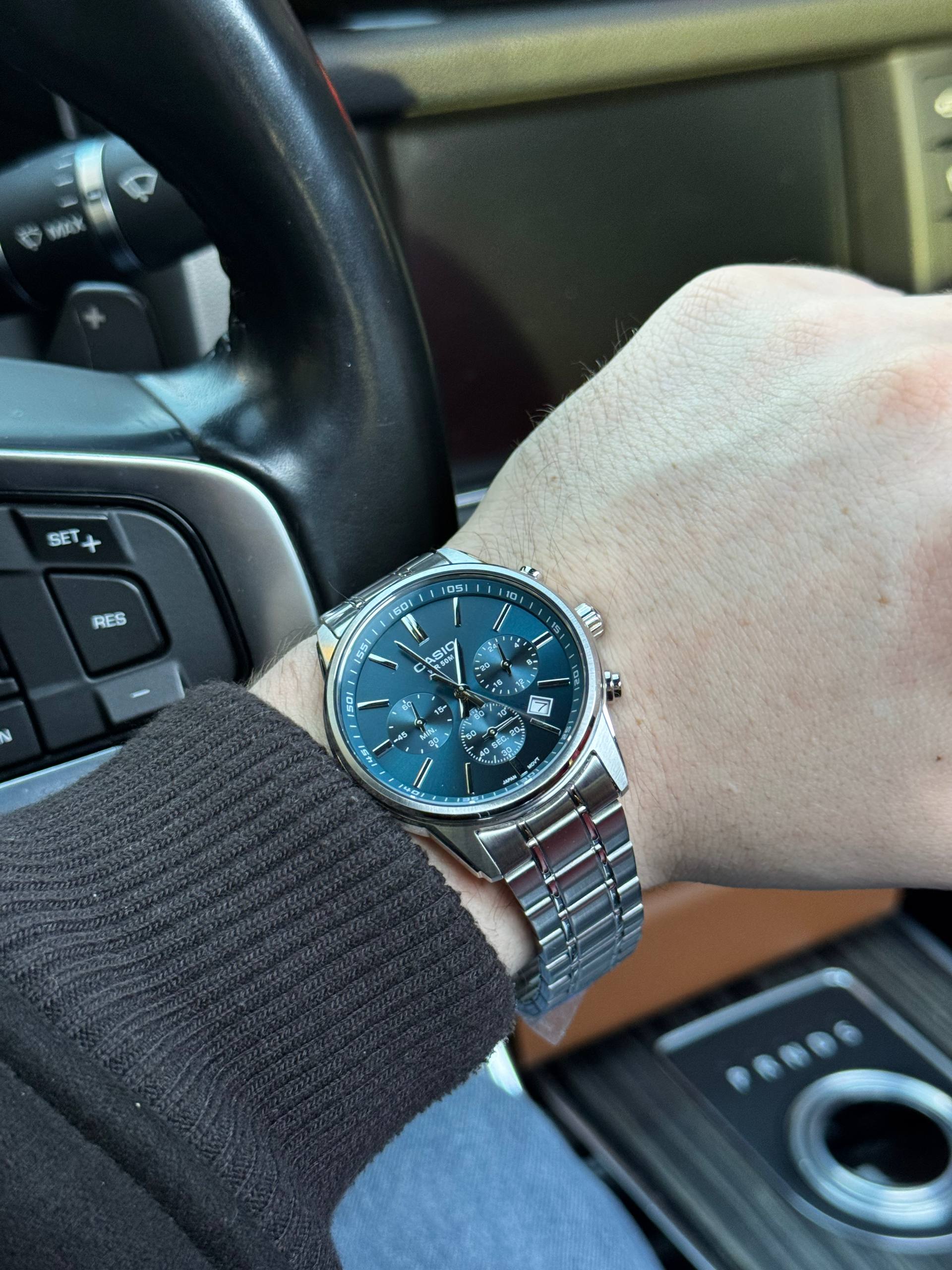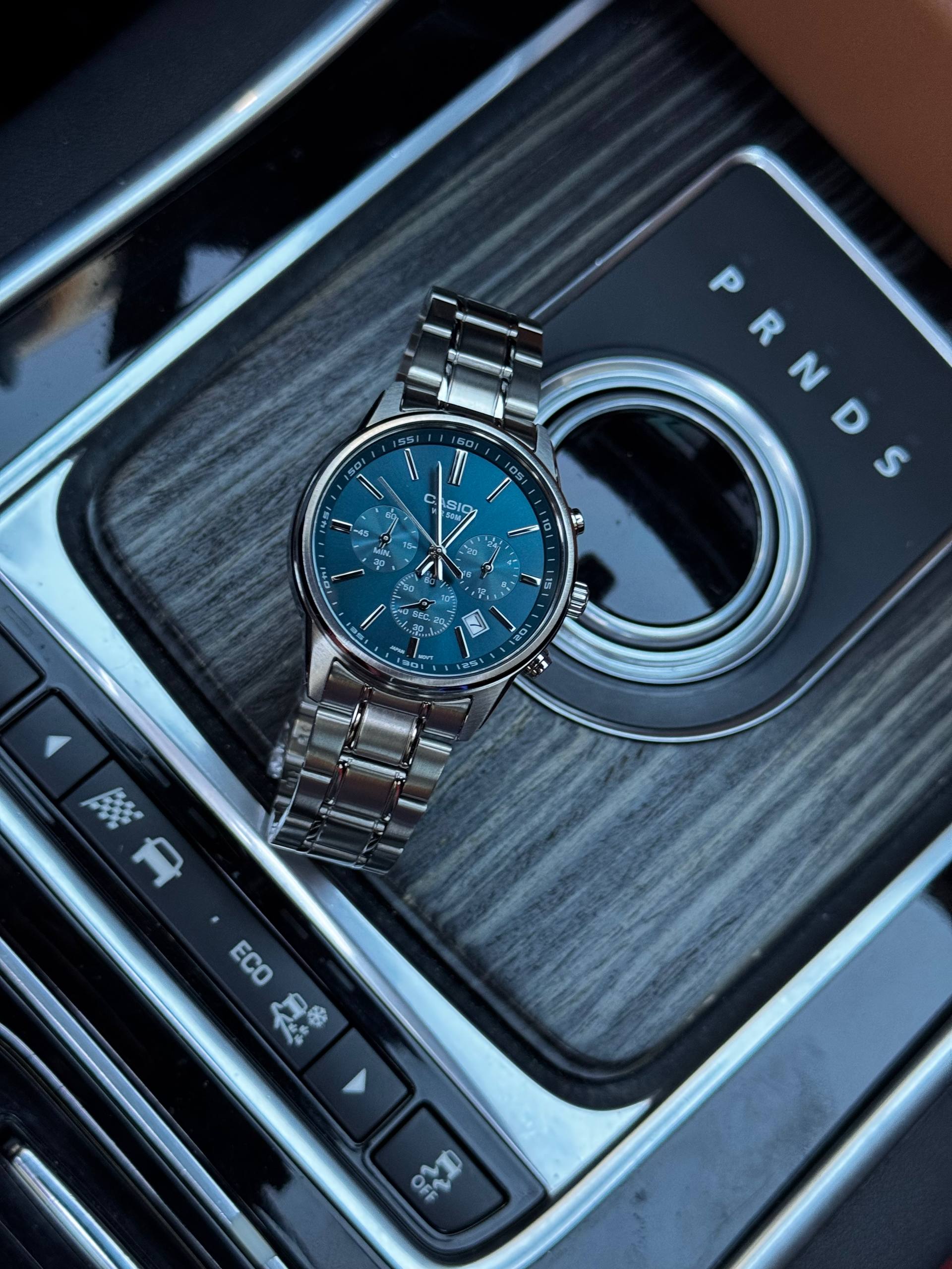 Сріблястий корпус із нержавіючої сталі та глибокий синій циферблат створюють елегантний і сучасний вигляд, який легко поєднується з будь-яким стилем одягу.