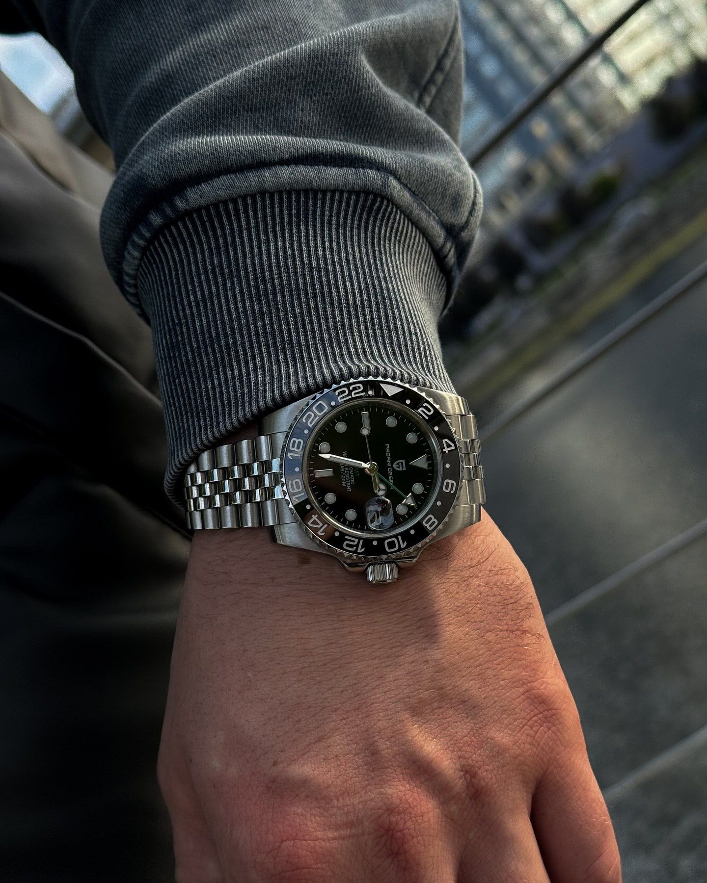 Ми впевнені у якості та красі Pagani Design Submarine GMT 1662, тому в картці товару ви знайдете живі фото та відео огляди, що передають усі деталі і текстури годинника. Без фотошопу, лише справжній вигляд вашого майбутнього аксесуара на Вашому зап'ясті.