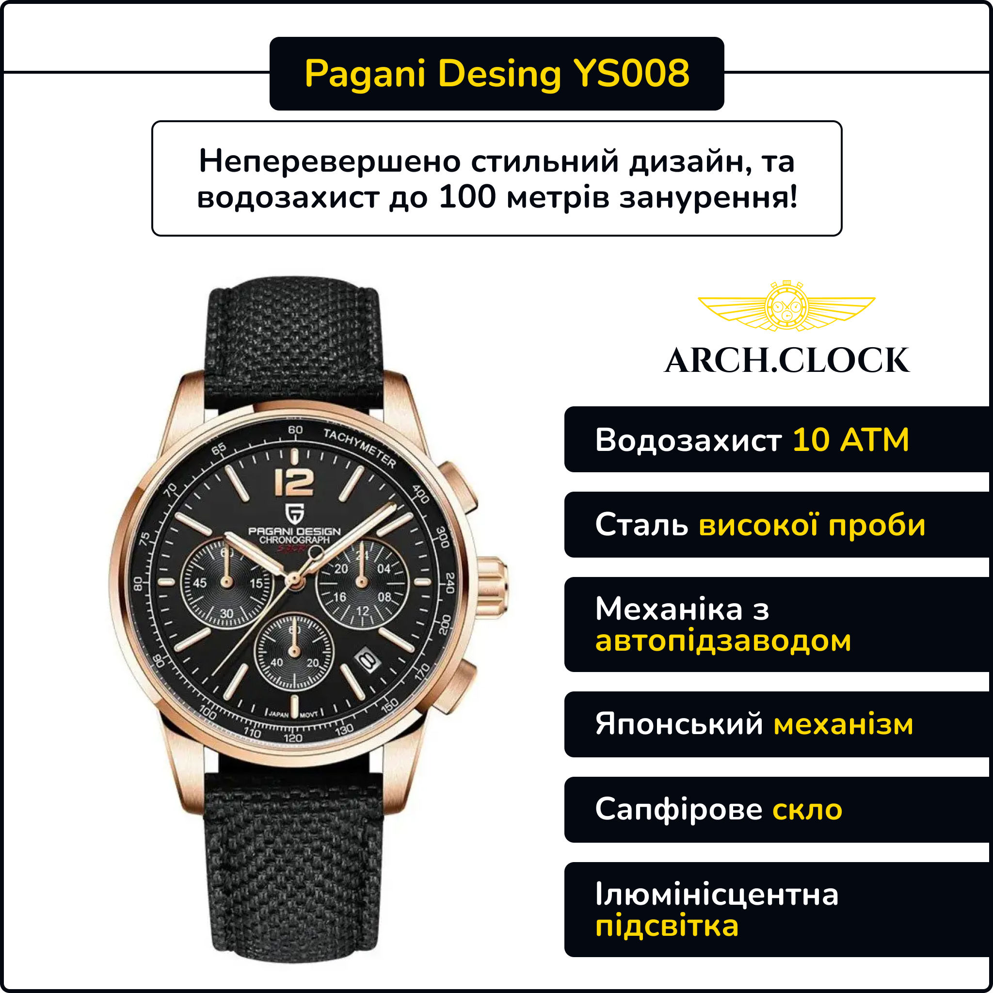 Преміальний бренд чоловічого годинника Pagani Designю.