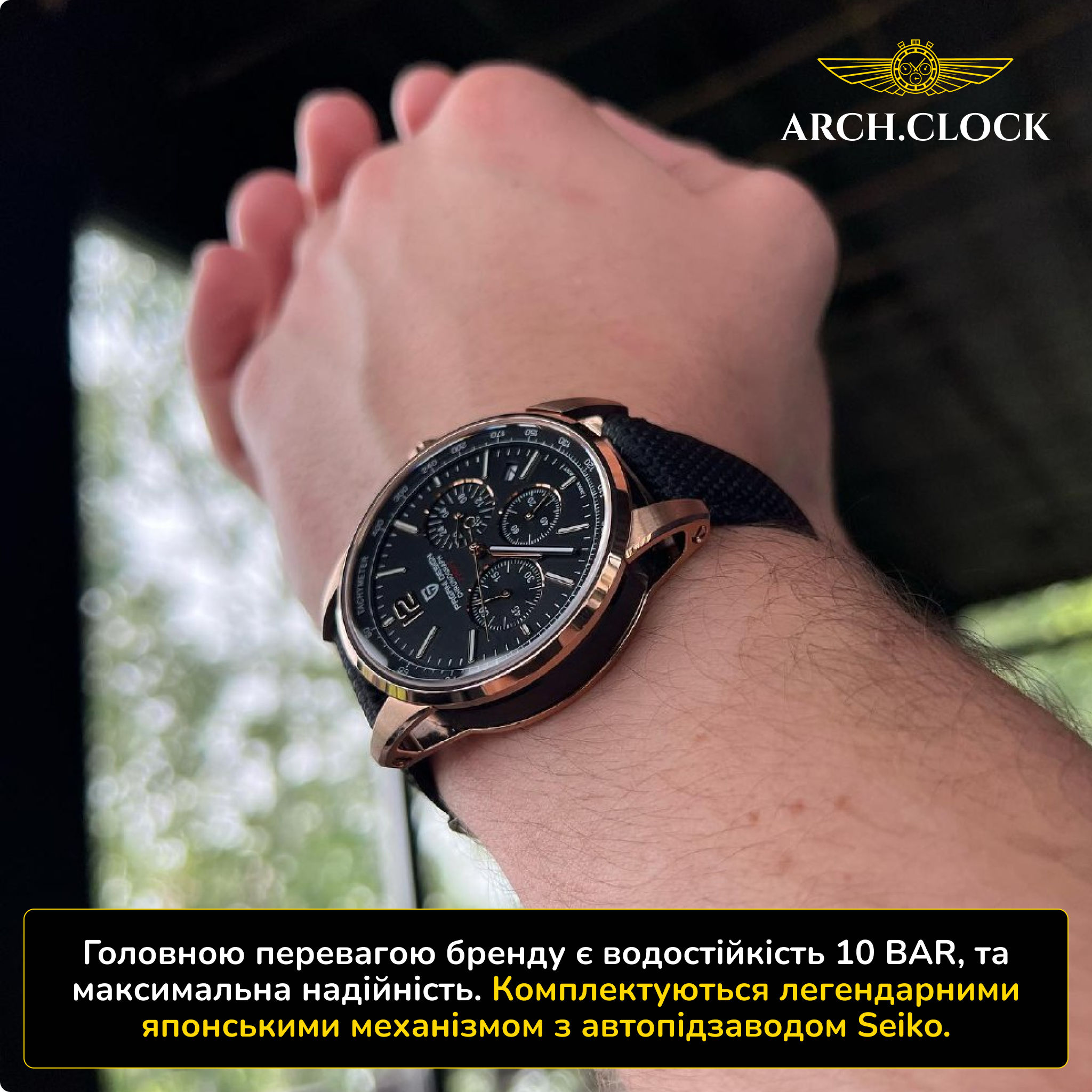 Головною перевагою бренду є водостійкість 10 BAR, та максимальна надійність.