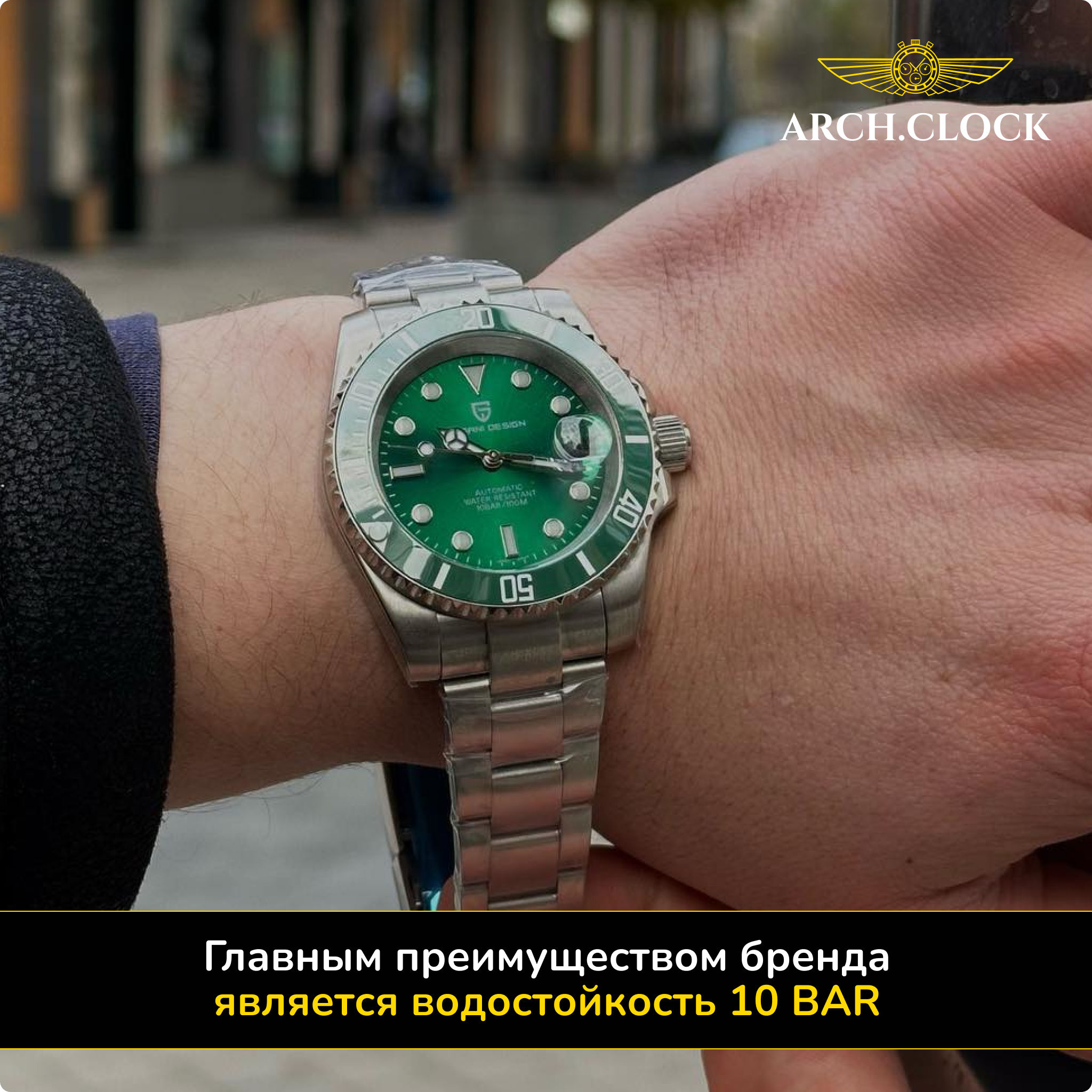 Главным преимуществом бренда является водостойкость 10 BAR, и легендарным японским механизмом с автоподзаводом от Seiko.