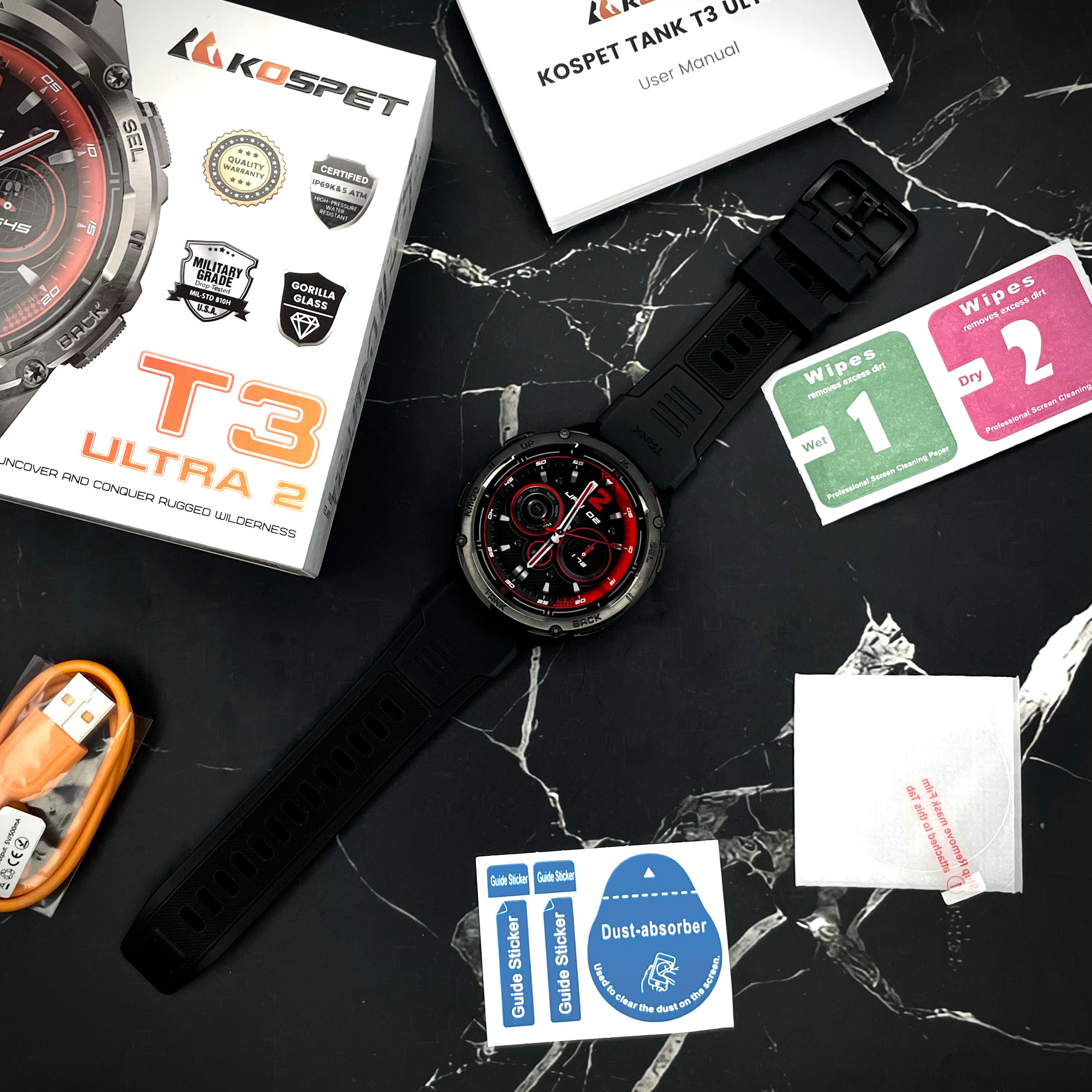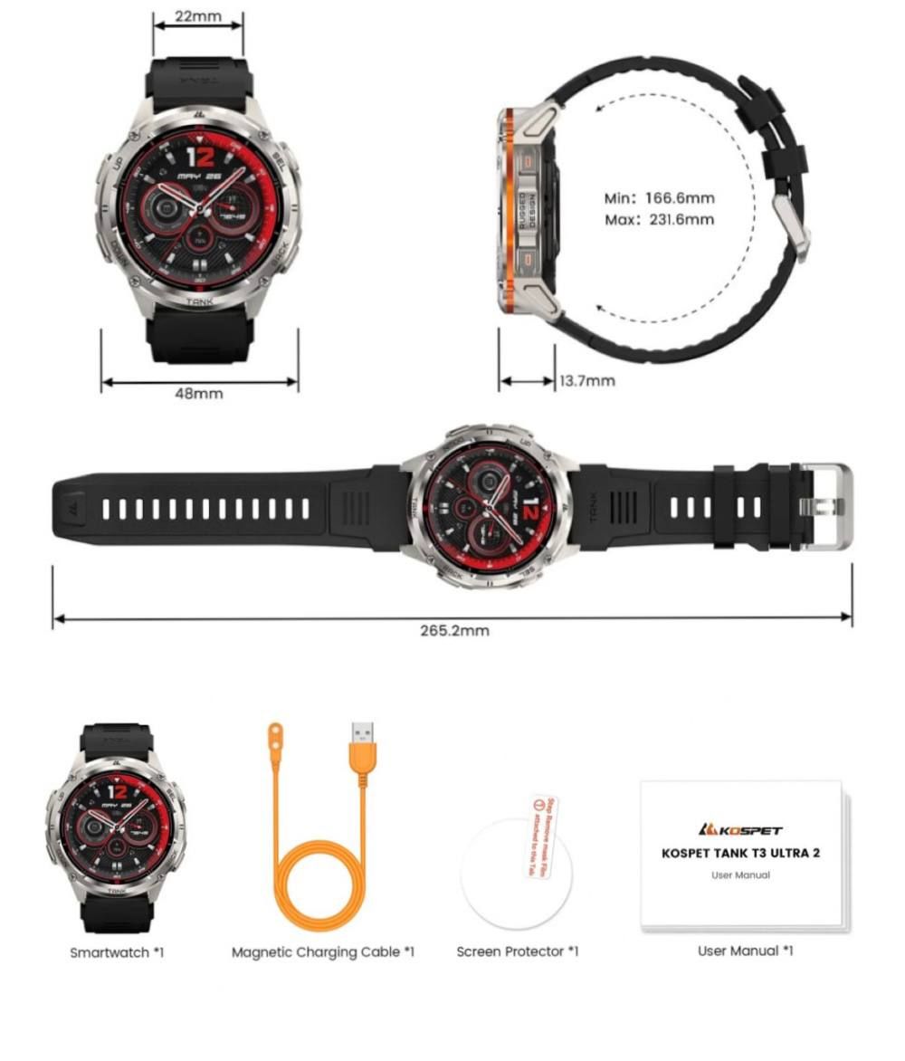 KOSPET TANK T3 ULTRA 2 – це смарт-годинник, який об’єднує неперевершену міцність, інноваційні функції та сучасний стиль. Ідеальний для тих, хто веде активний спосіб життя, любить пригоди та цінує надійність у будь-яких умовах.