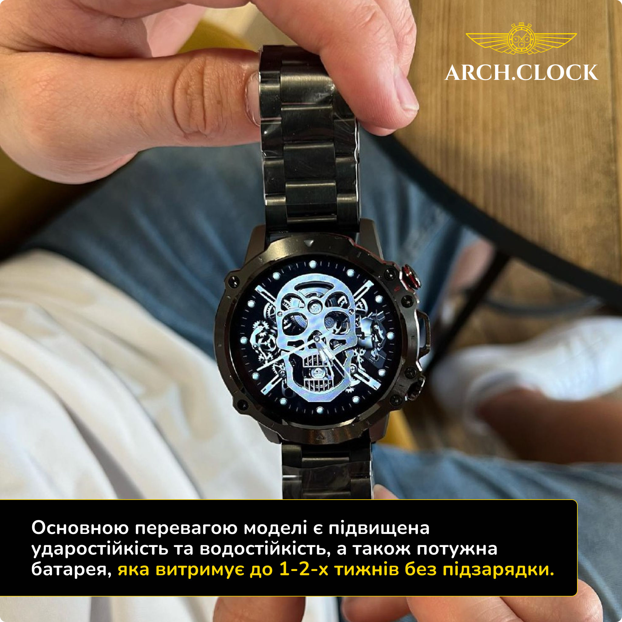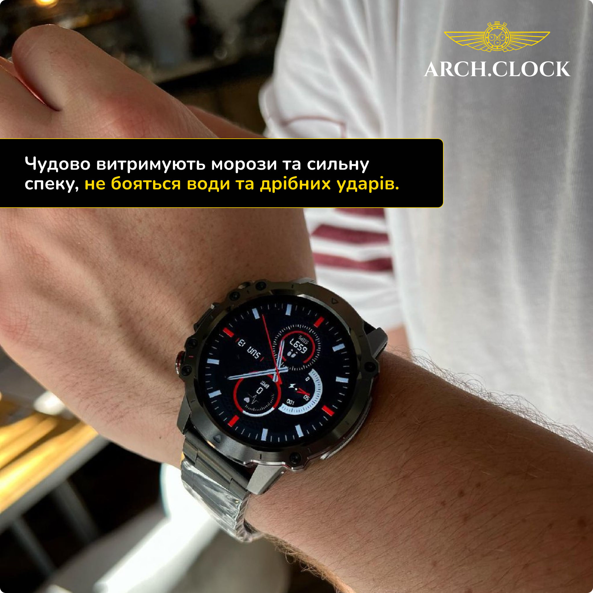 - Функції годинника: Здійснювати дзвінки, Сповіщення про дзвінки, Сповіщення SMS, Сповіщення з соціальних мереж, Прослуховування музики, Керування програвачем телефону, Дистанційне керування камерою телефону, Контроль яскравості дисплею, Зміна стилю циферблату, Контроль звуку годинника, Вібро режим, Беззвучний режим, Вимірювання артеріального тиску, Рівень кисню в крові, Пульсометр, Контроль сну, Моніторинг серцевого ритму, Дихальні вправи, Режим нагадувань, Погода , Пошук телефону, Тренувальні вправи, Калькулятор, Будильник, Таймер, Секундомір, Фітнес - трекер, Анти-втрата, Вимірювання пройденої дистанції, Дата, День тижня, Місяць, Енергостійкий акумулятор, Ударостійки корпус, Водозахист, Ліхтарик, Ігри