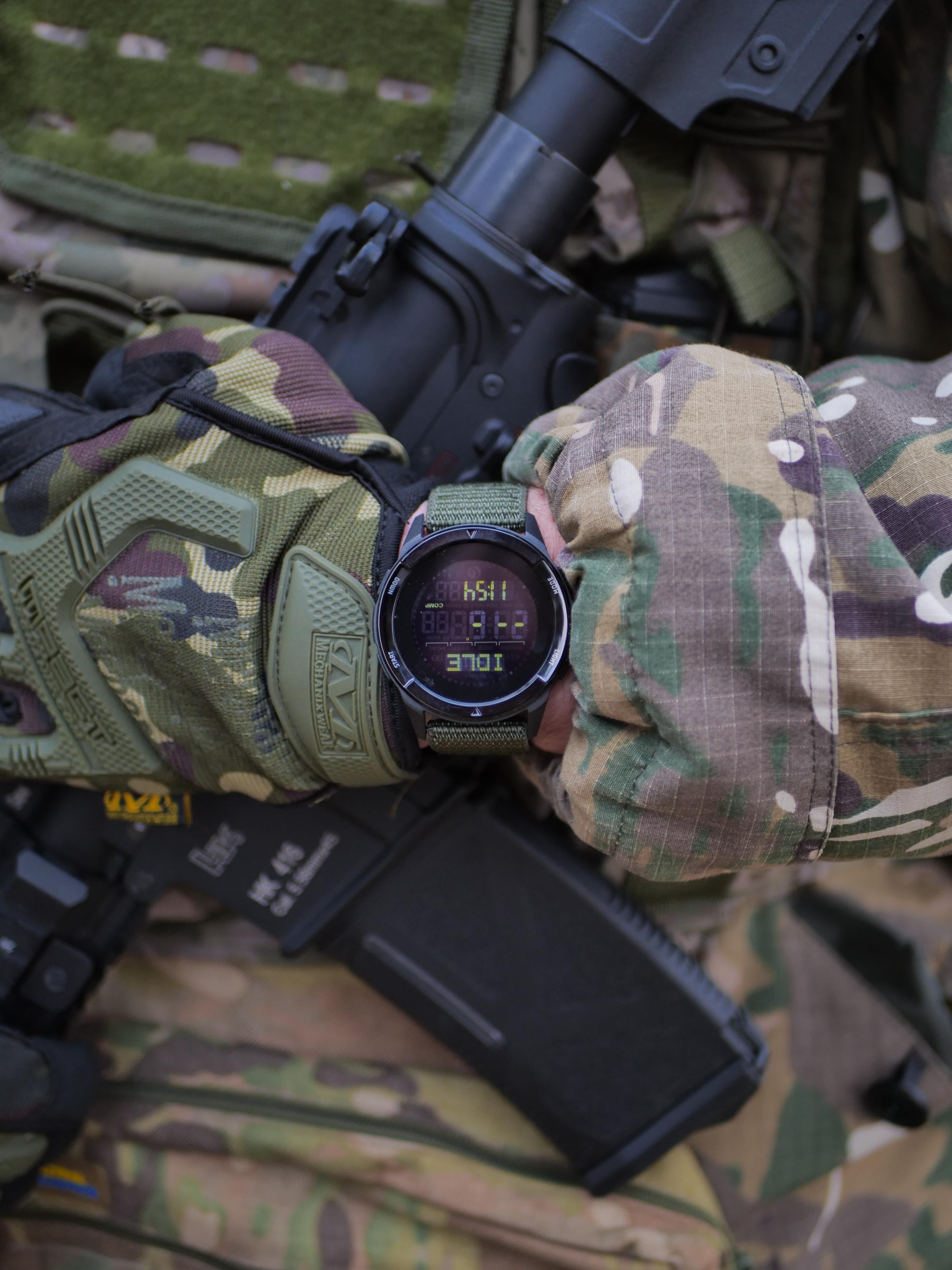 Міцний нейлоновий ремінець в кольорі олива забезпечує комфортне прилягання, не натирає і легко регулюється за довжиною.