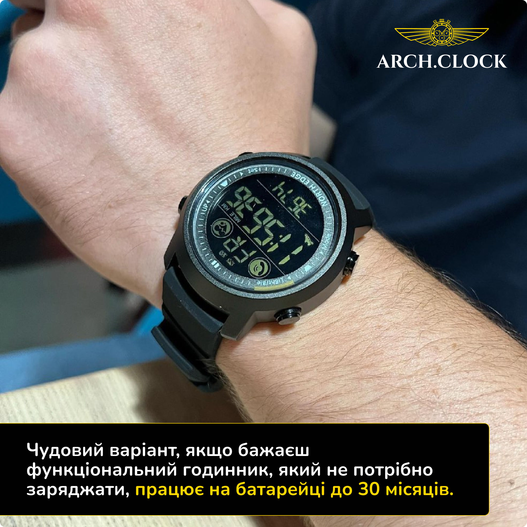 Чудовий варіант, якщо бажаєш функціональний годинник, який не потрібно заряджати, працює на батарейці до 30 місяців.
