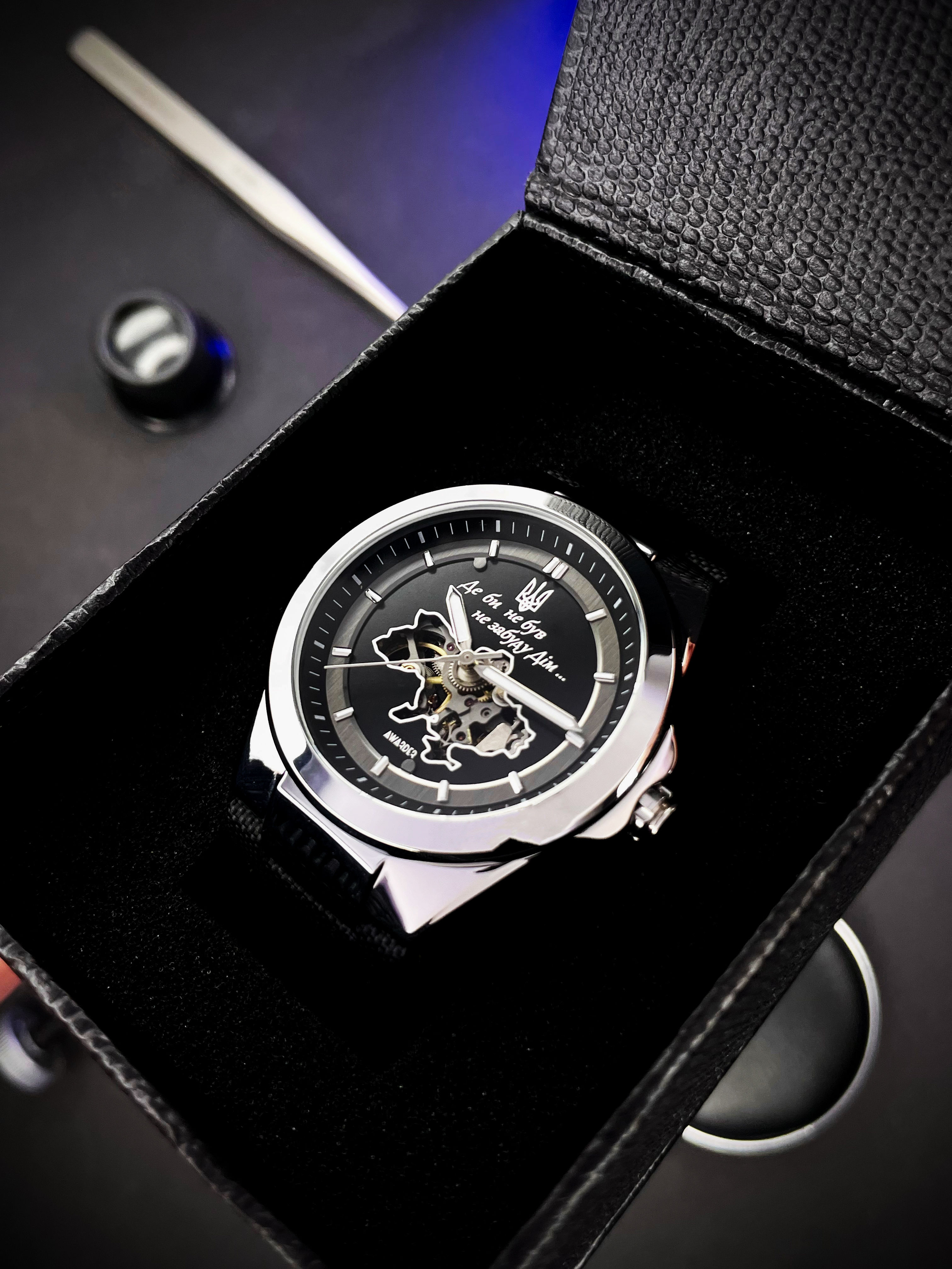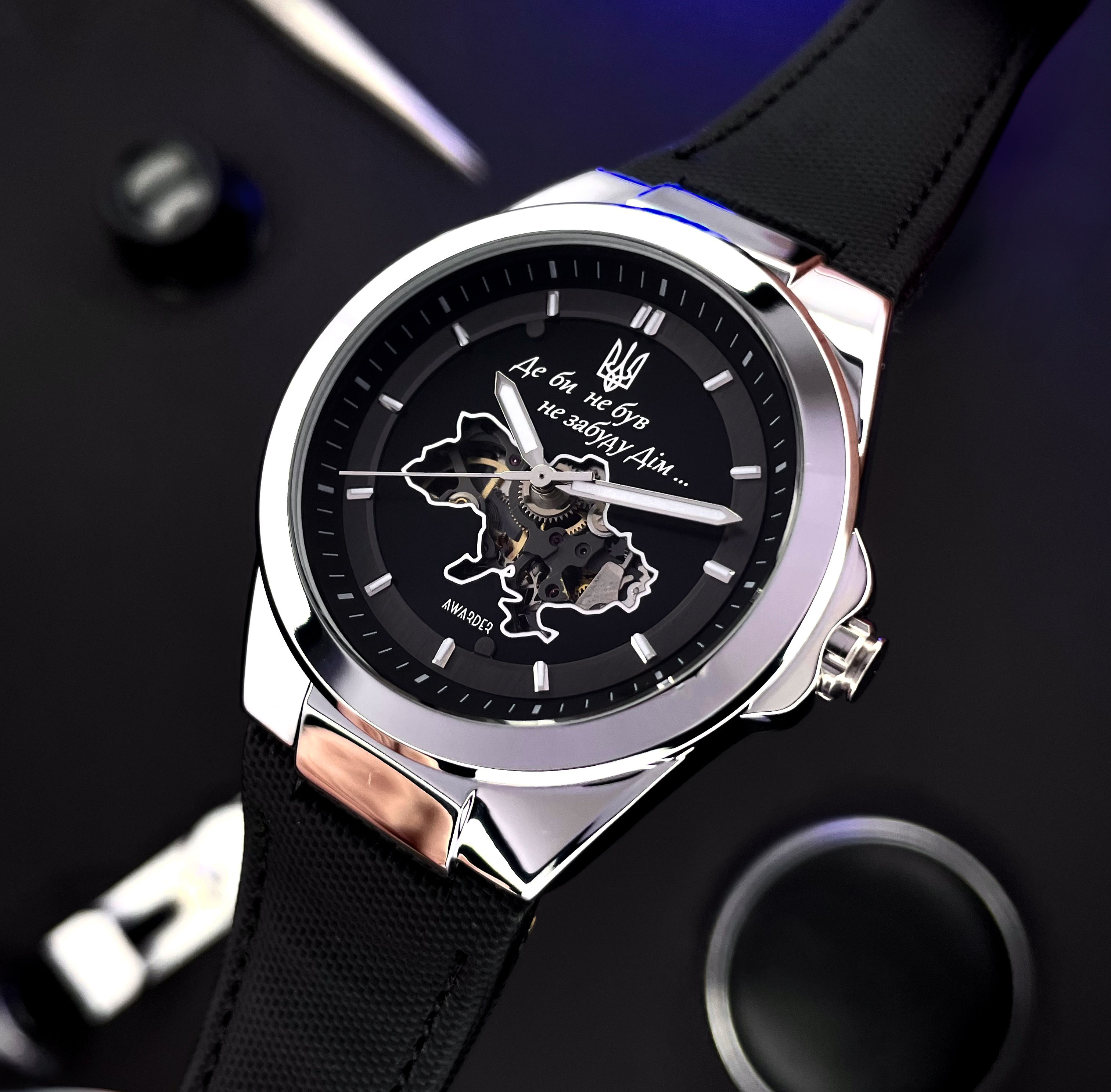 AWARDER Patriot Edition – це не просто годинник, а справжній символ сили, свободи та гордості за свою країну. Він стане стильним акцентом у вашому образі та нагадуванням про незламний дух.