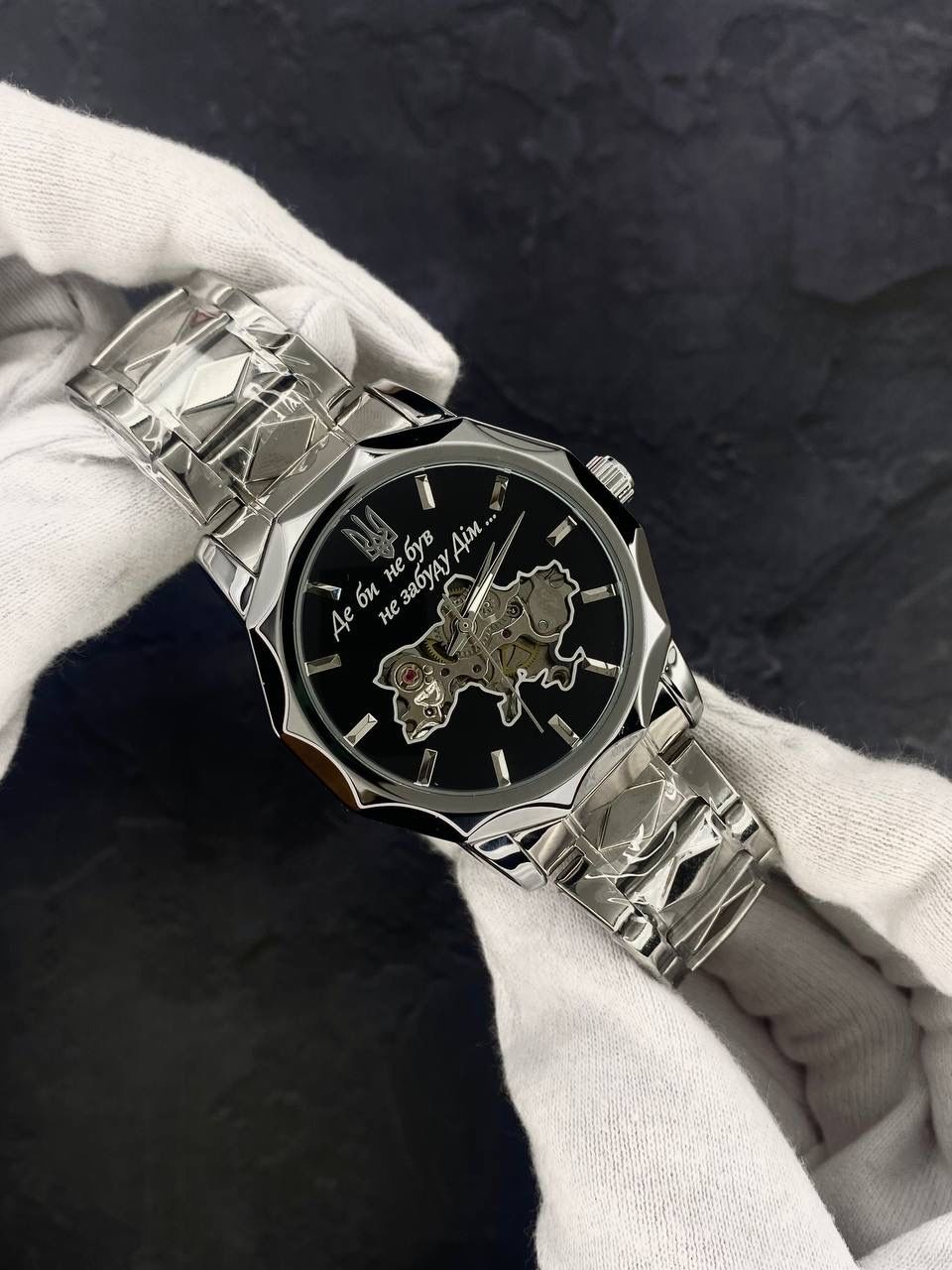 Цей годинник – справжня перлина для тих, хто пишається своєю країною та шукає стильний аксесуар з глибоким символізмом. PATRIOT DimUa вражає не лише неперевершеним дизайном у стилі скелетон, а й унікальним 3D циферблатом, на якому зображена мапа величної України. Кожен погляд на циферблат викликає захоплення та гордість, роблячи цей годинник не просто аксесуаром, а справжнім символом патріотизму.