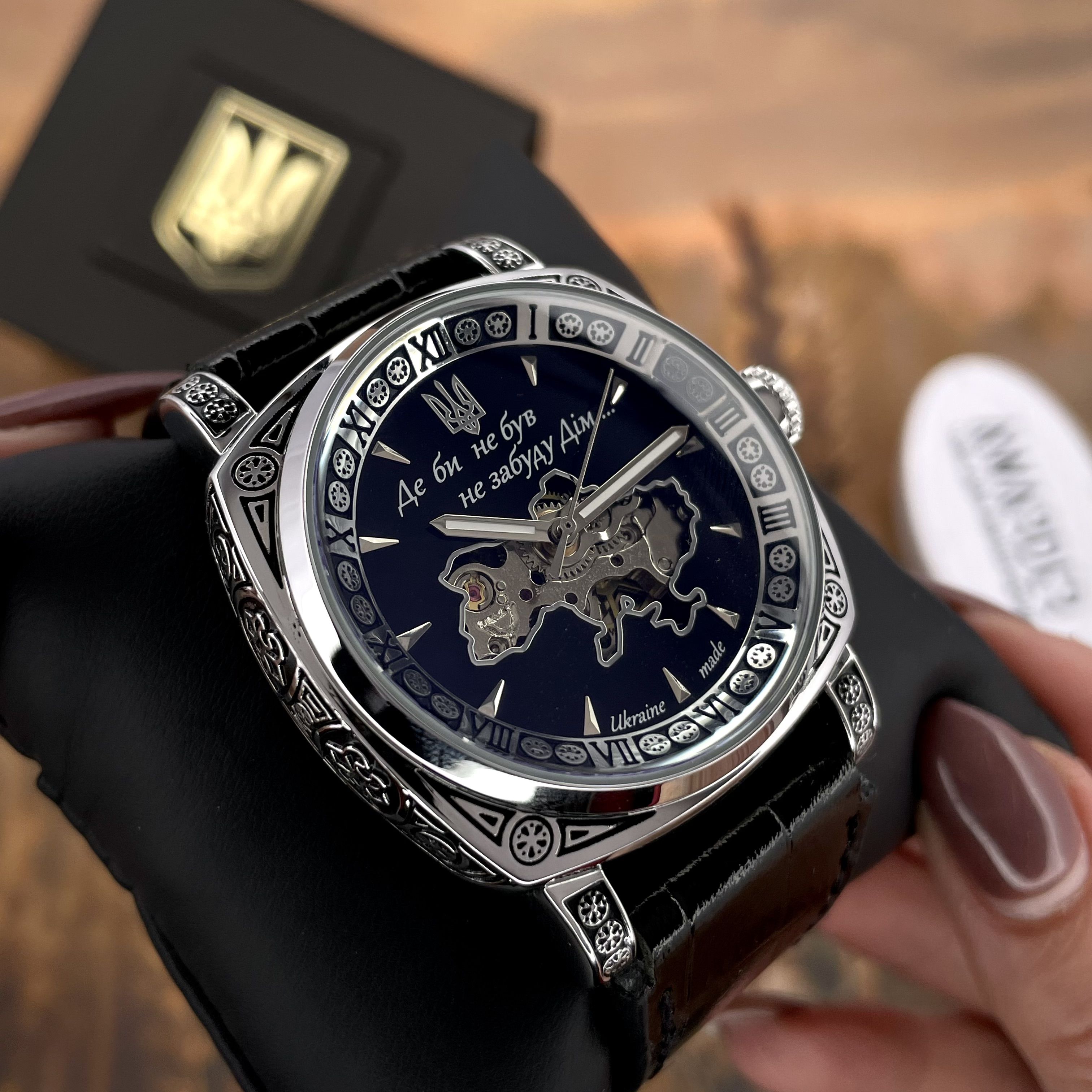 Міцний сталевий корпус не тільки надійний, але й прикрашений з такою увагою до деталей, що кожна грань відображає справжню майстерність українських годинникарів.